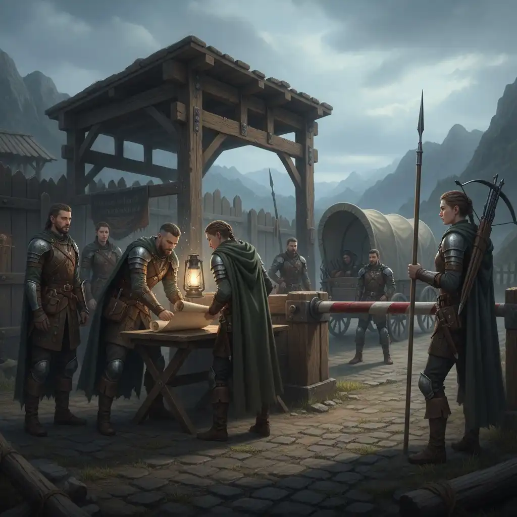 - Gatehouse Post: Checkpoint for tolls, manifests, and muster calls led by Captain Brindle.