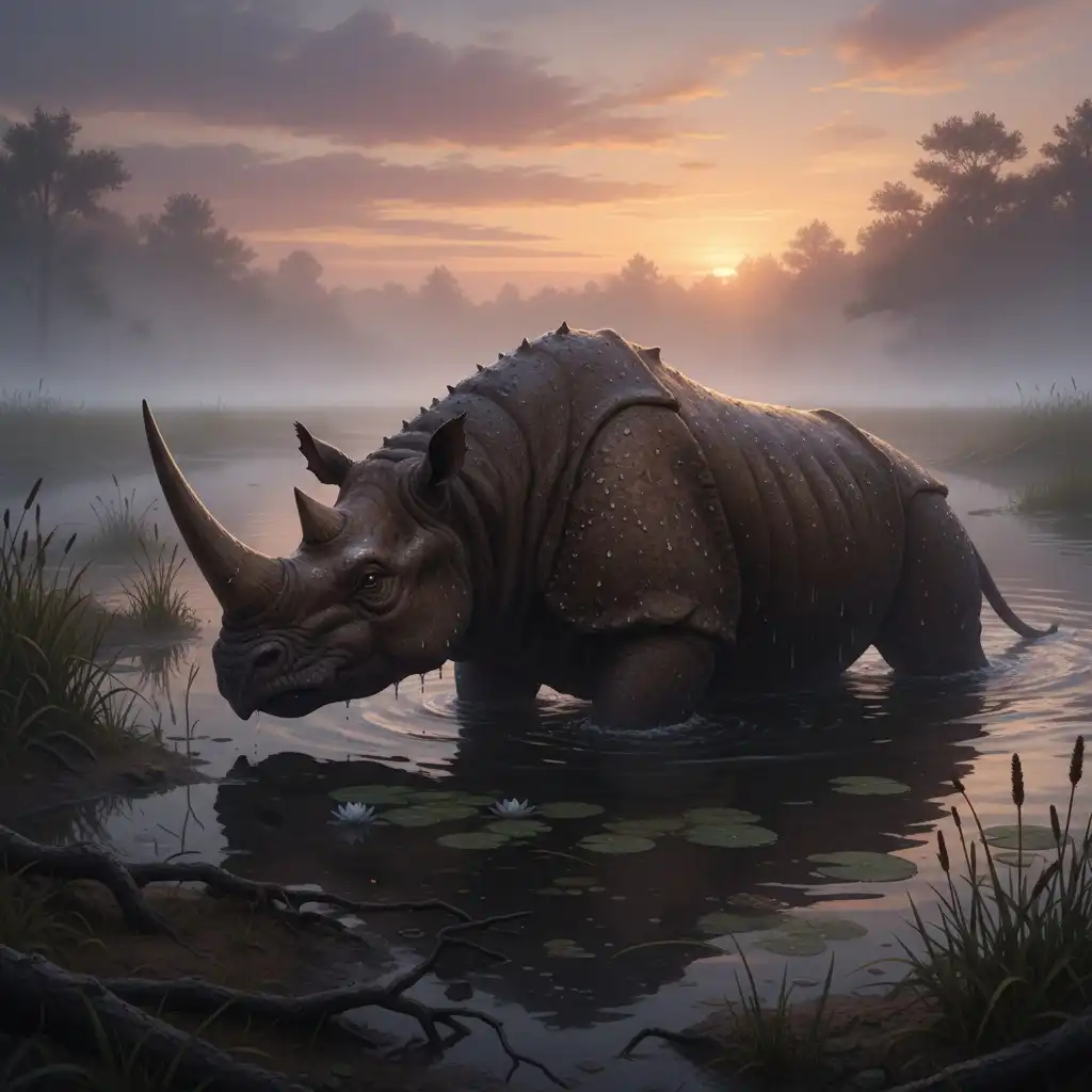 Human contact is frequent. River Warden posts discourage illegal horn harvesting, while traders like Sedge-Trader Ilyo barter for shed horn plates and cast-off hide. Calves are occasionally rescued after floods and re-wilded under the guidance of Marsh Naturalist Bren.