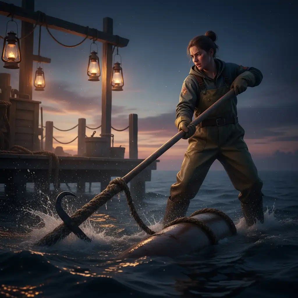 - Operation: Hook and draw lines; seat the back-spur to push; use the neck wrap when bracing against surges at Vesper Quay.