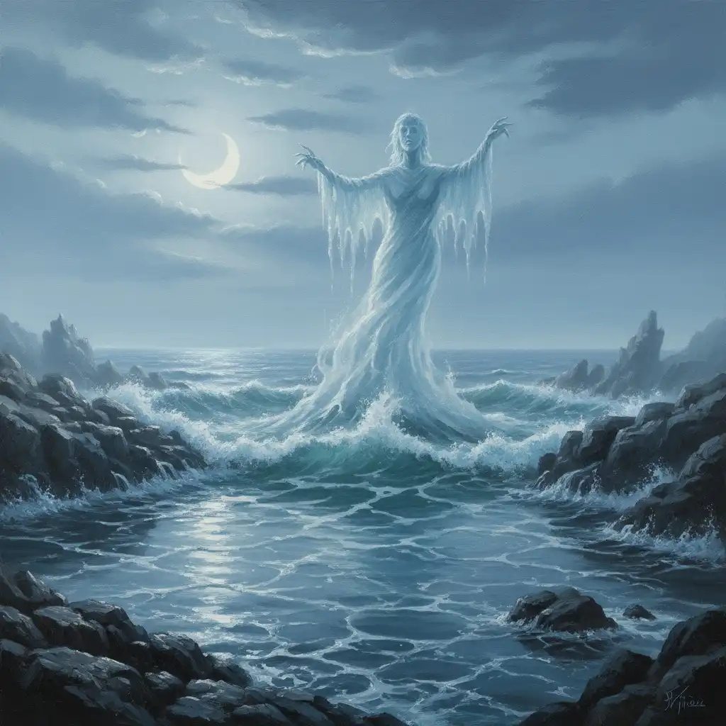 - Appearance: Tall, ragged veil of brine vapor threaded with pale motes; eye-hollows glow like drowned embers.