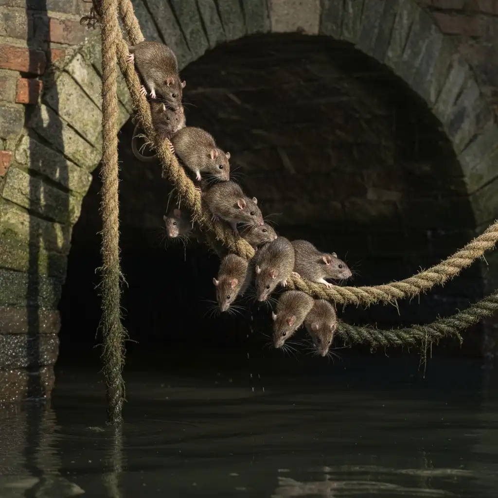 Rats chewing a mooring line beneath an underbridge market