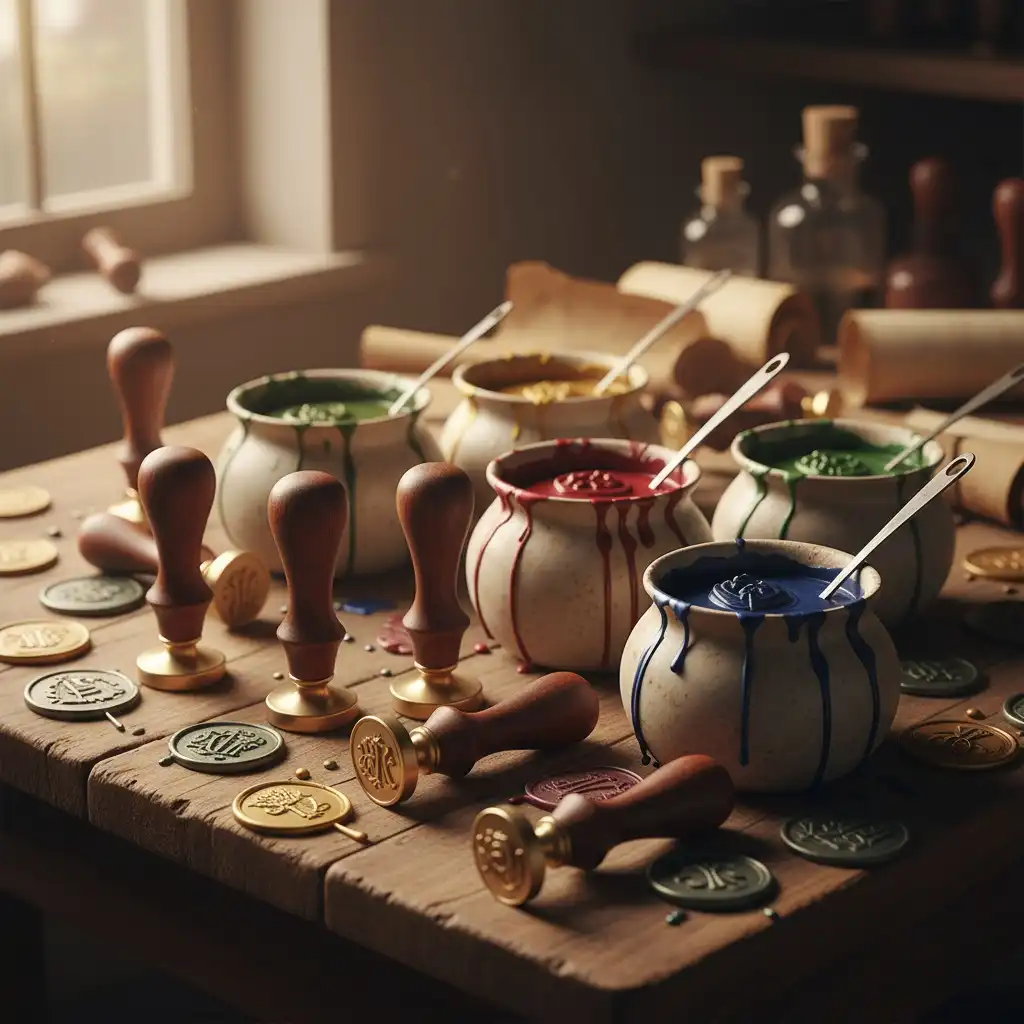 - False-Seal Bench: Tool tables for counterfeit Ledger Signet faces; heat pots and scrap wax trays nearby.