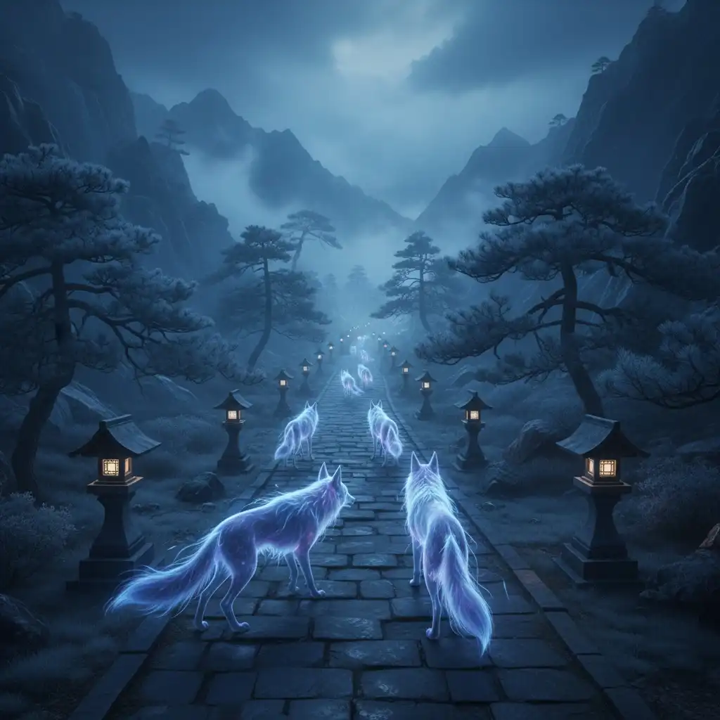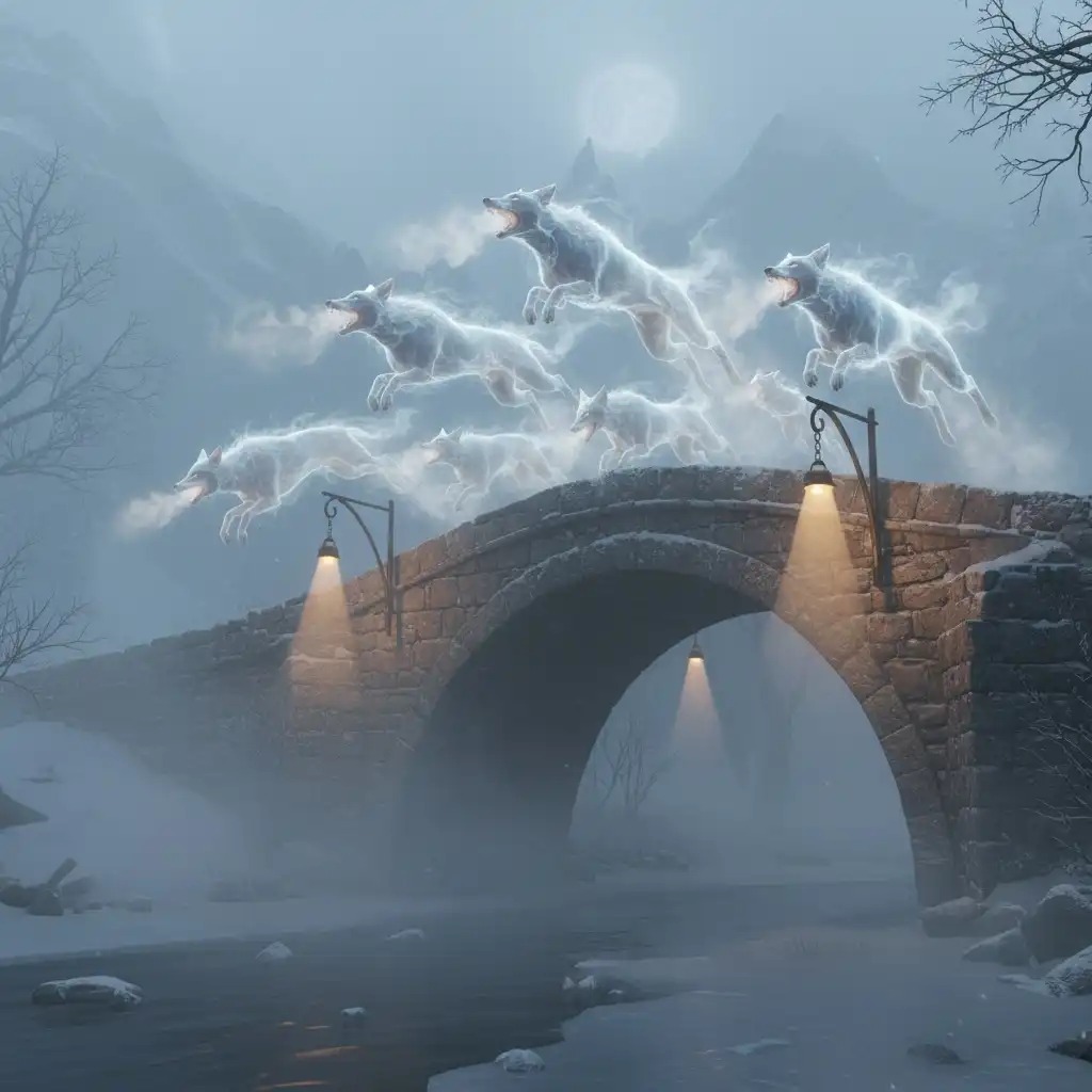 Wraith Jackals are spectral carrion-predators that haunt the lantern roads of Ironwood Pass and the northern skirts of Duskfall Ridge. They manifest at twilight and in fog, slipping between rock ledges and snow-bent pines to harry caravans. Escorts like the Ronin are commonly hired to deter packs during peak trade.