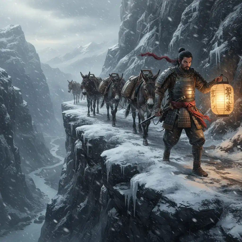 Ironwood Pass is a narrow mountain corridor linking Hikari Province and Duskfall Ridge. It serves as the main caravan route through the northern pines, marked by stone lanterns and weathered waystones. The pass is prone to snow squalls, rockfall, and prowling Wraith Jackals. Couriers and merchants hire escorts like the Ronin to cross safely.